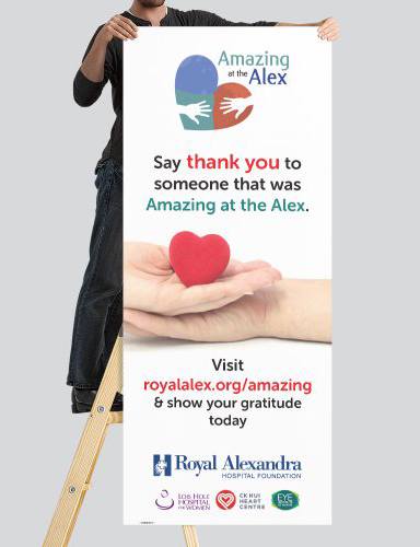 This retractable vertical banner was designed as part of the recognition program for a hospital called Amazing at the Alex.D