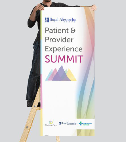 This retractable vertical banner was designed for a summit conference series